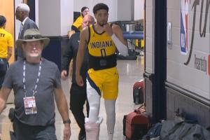 体育资讯06月17日讯 总决天王山,哈利伯顿在上半场一度回到更衣室。