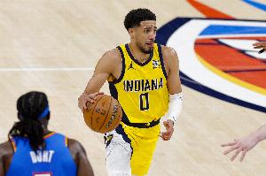 本场比赛,步行者后卫泰瑞斯-哈利伯顿受右小腿伤势影响,竞技状态全无,本场得分创个人季后赛新低。进攻端他颗粒无收,毫无存在感,第四节还送出两记关键传球失误,葬送比赛。