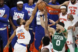 尼克斯的首发五虎唐斯+哈特+阿努诺比+布里奇斯+布伦森属于联盟顶级,止步东决的最大弊端来自于轮换深度。