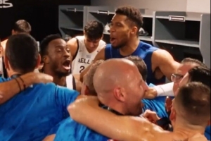 希腊男篮更衣室彻底嗨翻天 字母哥哥狂喷香槟&所有人高歌热舞