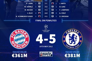 今夜谁将取胜?德转回顾12年欧冠决赛双方阵容,切尔西安联夺冠