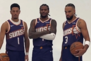 杰伦-格林C位!太阳官方晒视频:布克与两名新援一起拍定妆照