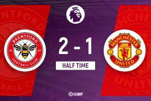半场-曼联暂1-2布伦特福德 舍什科处子球 曼联后防两度被打穿丢球