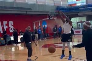 比卢普斯:今天训练中杨瀚森篮板抢得不错 一定要做好篮下保护