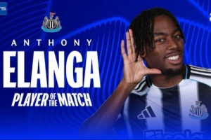 1过人成功1关键传球,伊兰加当选纽卡4-0圣吉罗斯一役全场最佳