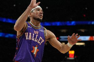 得分组织一把抓!布克半场小试牛刀 9投4中得14分2板5助