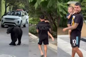 惊魂时刻!在路上遇到一头熊,安赫尔-科雷亚抱着2岁女儿连连后退