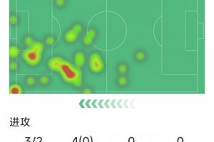 拉什福德本场数据:1粒进球,3射2正,3次关键传球,1次失良机