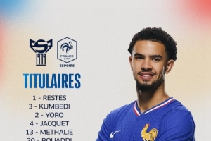 法国U21vs法罗群岛U21首发:扎伊尔-埃梅里、特尔、约罗出战
