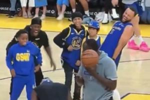 得逞后快笑尿了🤣巴特勒和库里怂恿小学生欺负希尔德