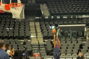 快船季前赛主场战掘金 保罗赛前热身飚中负角度三分