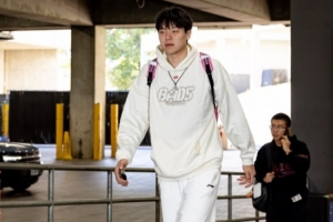 主场与勇士二番战!开拓者入场照:杨瀚森卫衣+运动裤 一身白