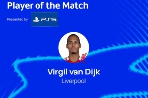 1进球6解围,范戴克当选利物浦5-1客胜法兰克福全场最佳球员