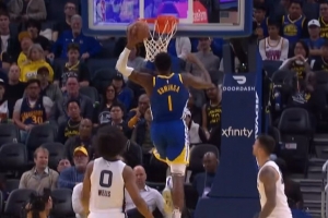 直捣黄龙!库明加借掩护杀到篮下单臂劈扣
