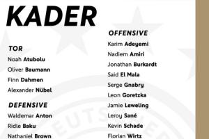 进攻端:阿德耶米(多特)、阿米里(美因茨)、伯卡特(法兰克福)、马拉(科隆)、格纳布里(拜仁)、格雷茨卡(拜仁)、勒威林(斯图加特)、萨内(加拉塔萨雷)、沙德(布伦特福德)、维尔茨(利物浦)、沃尔特马德(纽卡)