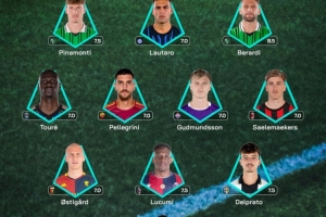 意甲官方第11轮最佳阵:劳塔罗、萨56领衔,佩莱格里尼在列