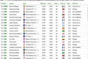 CIES球员应得最高年薪排行:姆巴佩2280万欧居首,萨拉赫位居次席