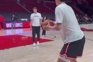触底反弹?杨瀚森正在进行三分热身 今天扔进一个三分呗?
