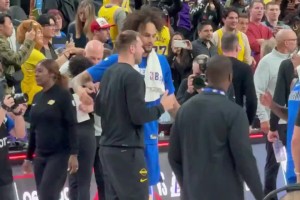 还是很爱😭东契奇与独行侠前队友一一拥抱谈心,与浓眉有说有笑