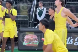 德克萨斯大学橄榄球队成员观战马刺 星三代曼宁与文班合影换球衣