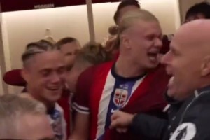 距世界杯一步之遥!挪威全队赛后在更衣室狂欢