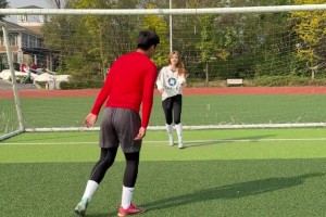 duang~兄弟这射门射得好射得准,一脚踢中了女足的屁股😤