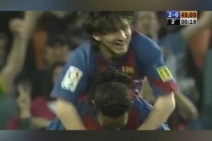 青涩!17岁梅西巴萨处子球!送出助攻的小罗背起梅西庆祝!