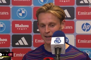 德容赛后:当终场哨声响起时,我看到皇马球员们朝着我们球员跑去