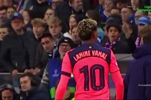 整场被布鲁日球迷辱骂!主队绝杀球被吹后亚马尔给他们送上飞吻