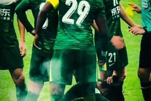 疼!实拍:张玉宁与对手发生小冲突后,一直捂着自己的后脑勺😐