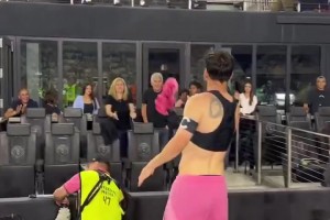 梅西把球衣送给母亲,后者送飞吻感谢😂