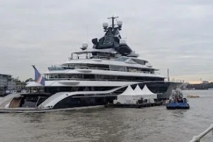 体育资讯10月18日讯《太阳报》报道,英超富勒姆俱乐部老板、身价近110亿英镑的沙希德-汗,其价值高达3.45亿英镑的超级游艇近日被发现停泊在伦敦的泰晤士河上,靠近著名的塔桥。这位75岁的亿万富翁此次来