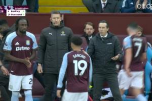体育资讯10月26日讯英超第9轮,曼城vs阿斯顿维拉。比赛第29分钟,布恩迪亚受伤无法坚持比赛被换下,桑乔替补登场,迎战自己的青训球队曼城。