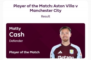 体育资讯10月27日讯英超第9轮比赛,维拉主场1-0击败曼城。据赛后英超官方的消息,打进制胜进球的卡什当选此役全场最佳球员,在评选中获得58%的投票。这名维拉后卫此役首发出战打满全场,除进球外,还有1记