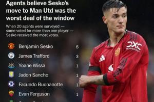 体育资讯10月18日讯TheAthletic进行了一年一度的经纪人调查,对20位经纪人进行了访谈,让他们选出心目中今年夏窗英超最差的转会操作。20位经纪人中,有6位将英超夏窗最差转会投给了曼联花费765