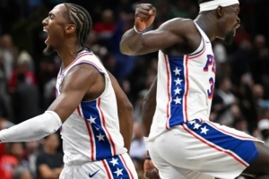 费城干掉奇才,开季四连胜。马克西四场150分,今天39分。常规时间最后三分钟6分2助攻逆转,加时赛最后一分钟两个强突——博纳补进了一个——挽救了比赛。格莱梅斯三分干掉黄蜂后,今天又一帽一三分拖进加时。